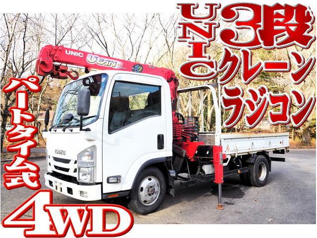 4WD!!エルフ標準ロングの3段クレーンラジコン付平ボディになります。